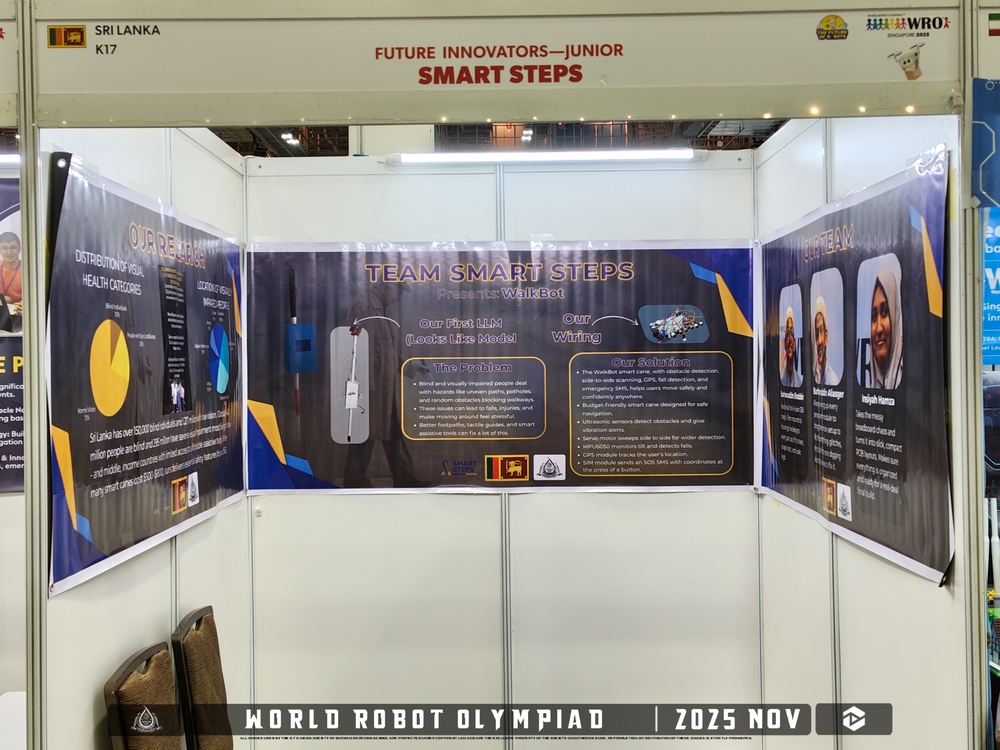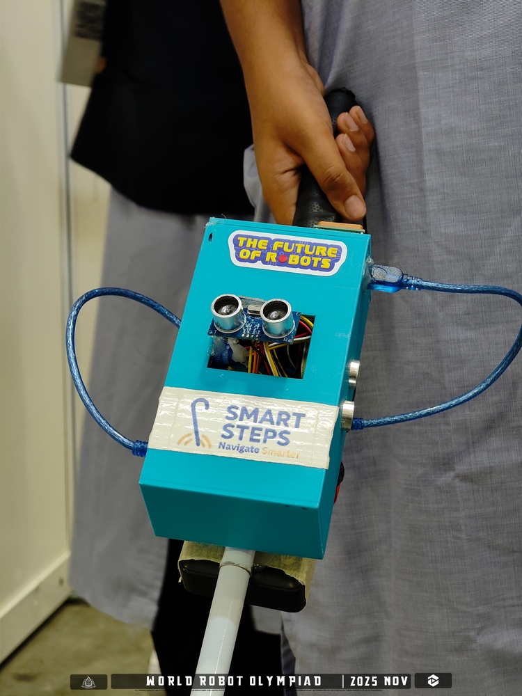 • SmartSteps – Burhanuddin Aliasger (13), Burhanuddin Shabbir (13), and Insiya Hamza (12) created WalkBot, a smart walking-stick attachment that detects obstacles for visually impaired users. They placed 30th out of 58 teams.