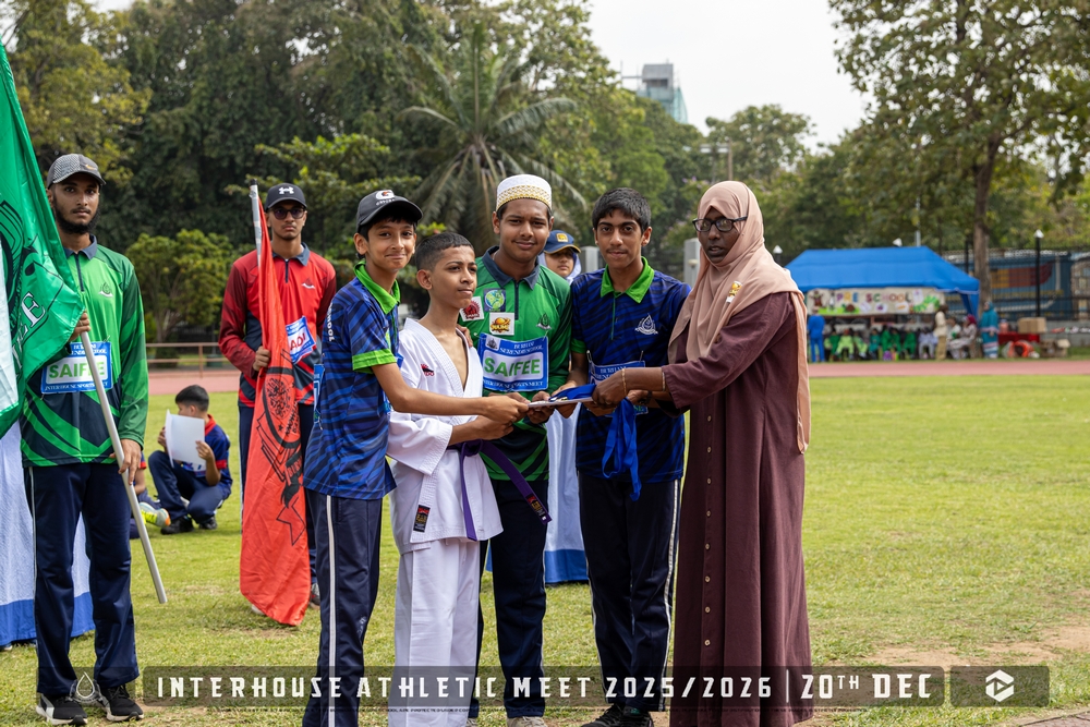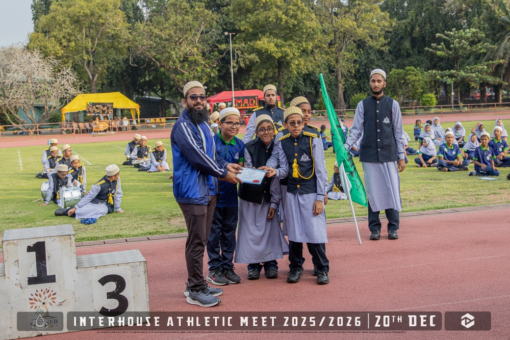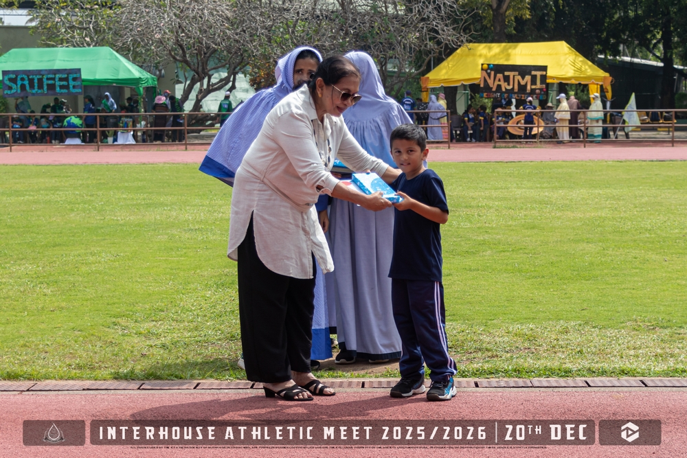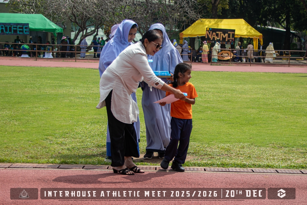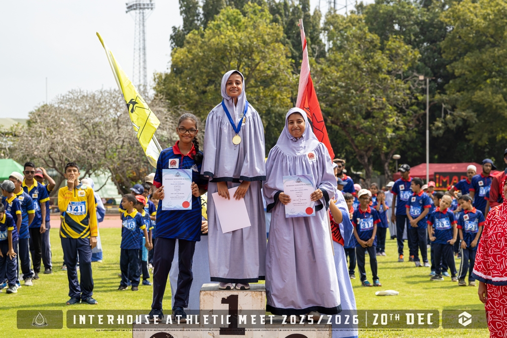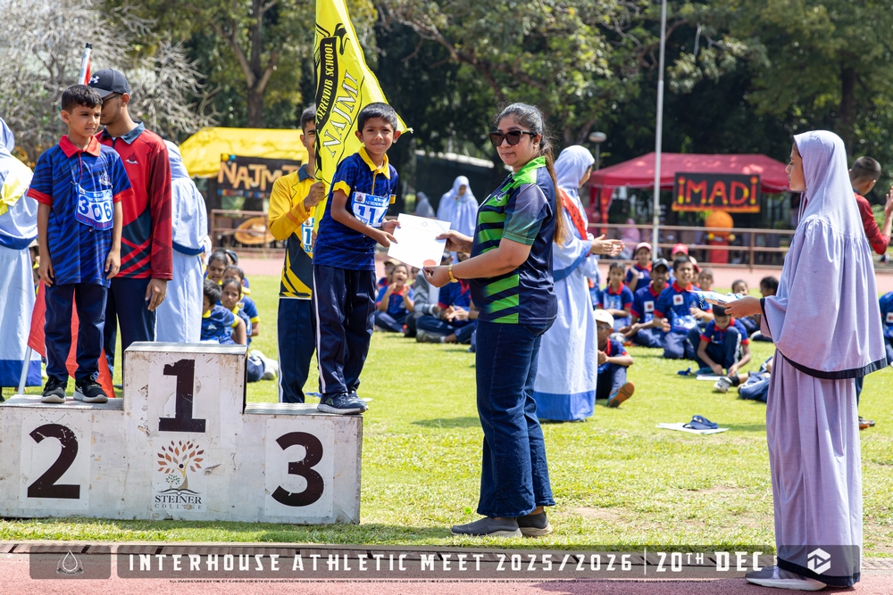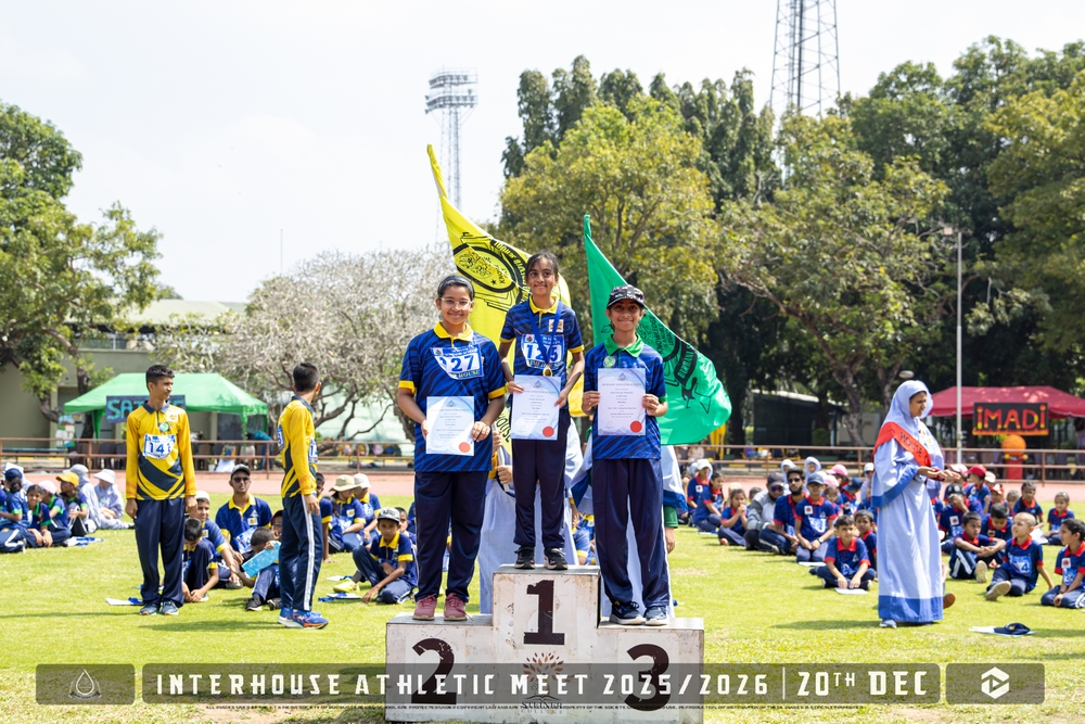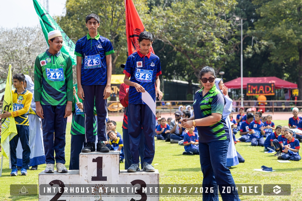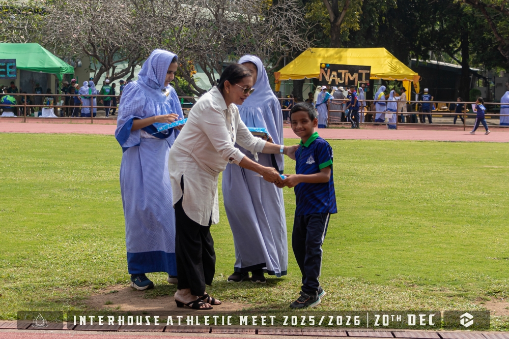 The meet concluded with SAIFEE House securing First Place, followed by IMADI House in Second Place. NAJMI House finished in Third Place, displaying determination, resilience and commendable sportsmanship. Congratulations to all participants for making the Interhouse Athletic Meet 2025/26 a successful and memorable event.