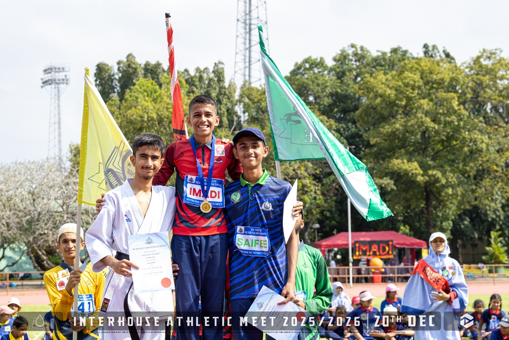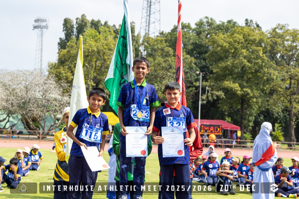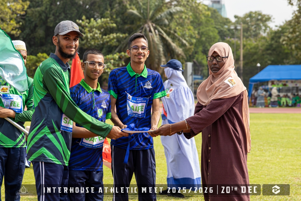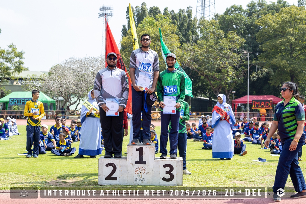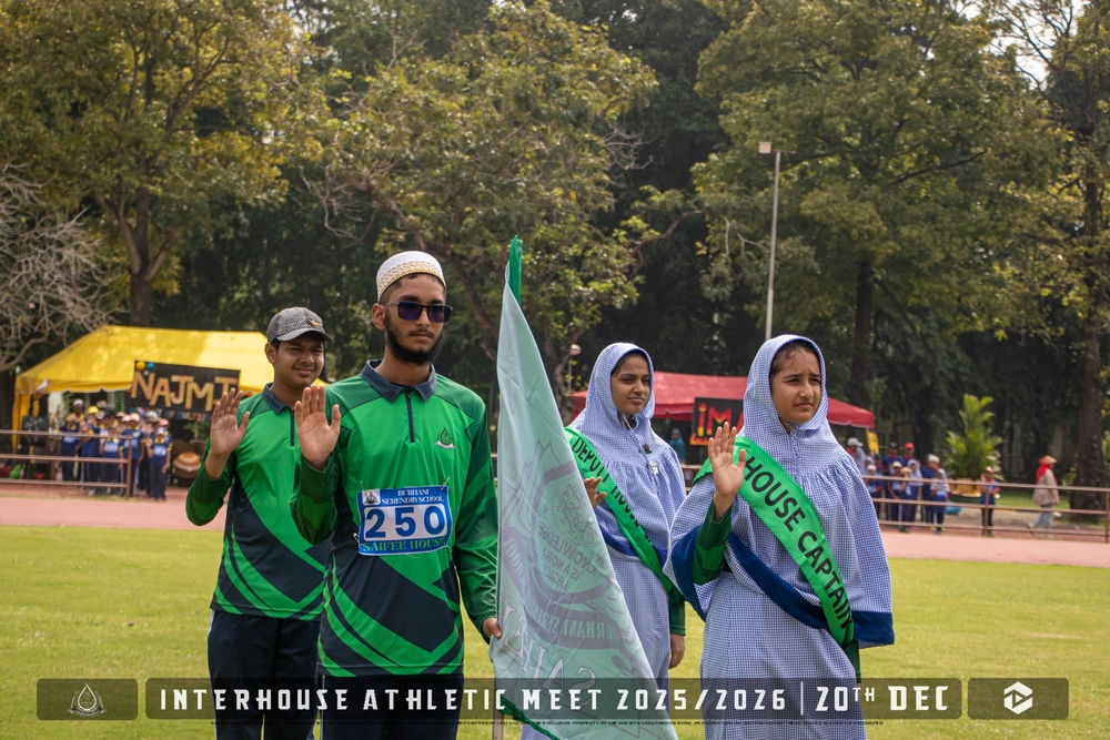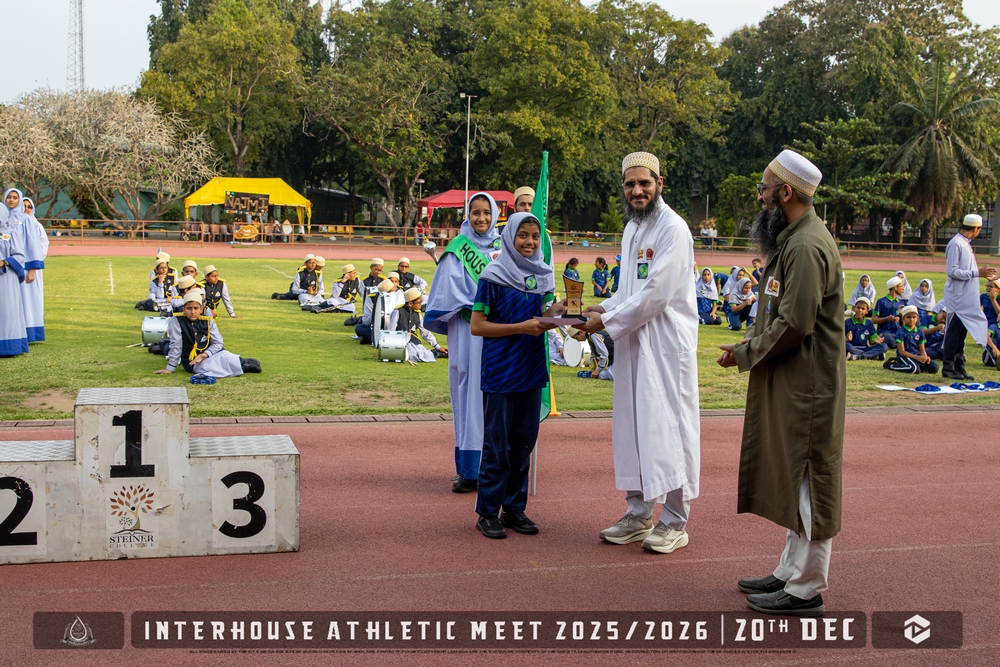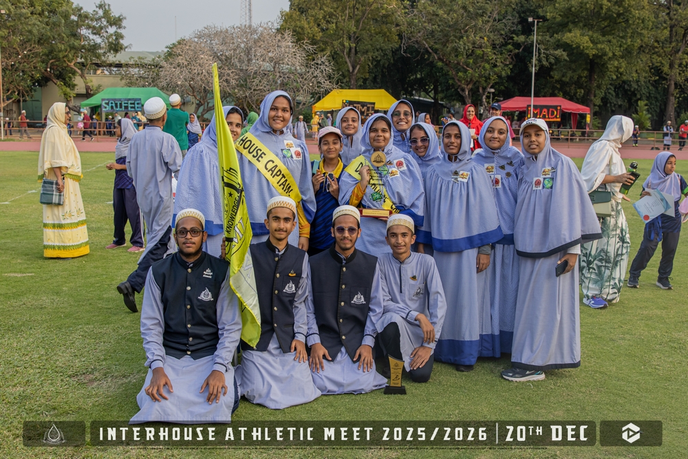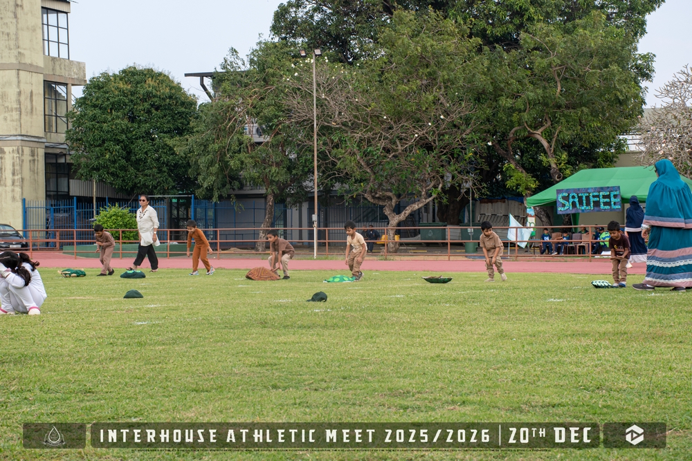 The meet concluded with SAIFEE House securing First Place, followed by IMADI House in Second Place. NAJMI House finished in Third Place, displaying determination, resilience and commendable sportsmanship. Congratulations to all participants for making the Interhouse Athletic Meet 2025/26 a successful and memorable event.