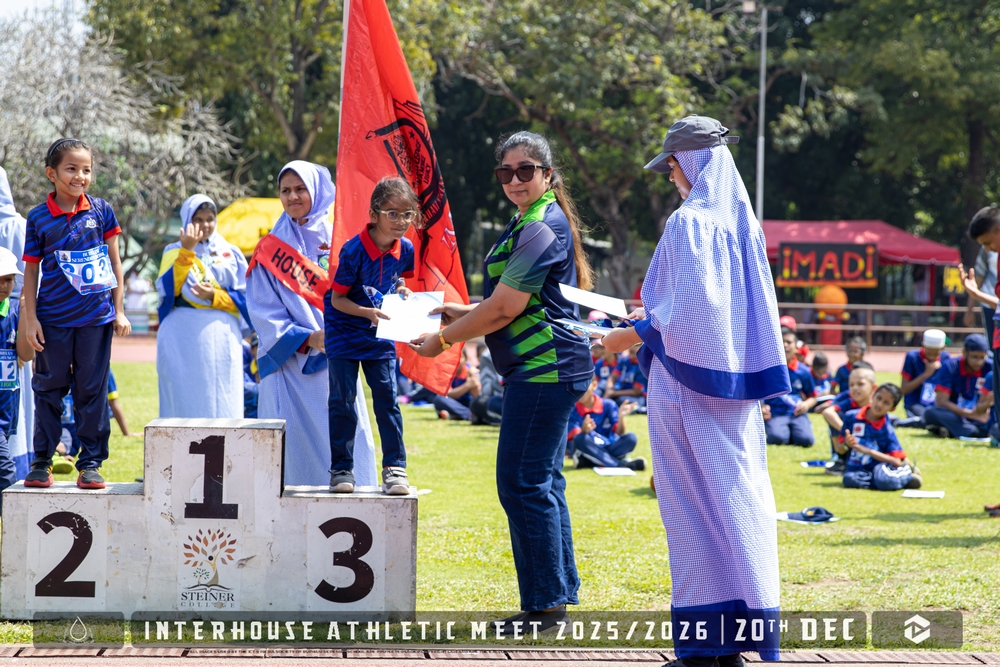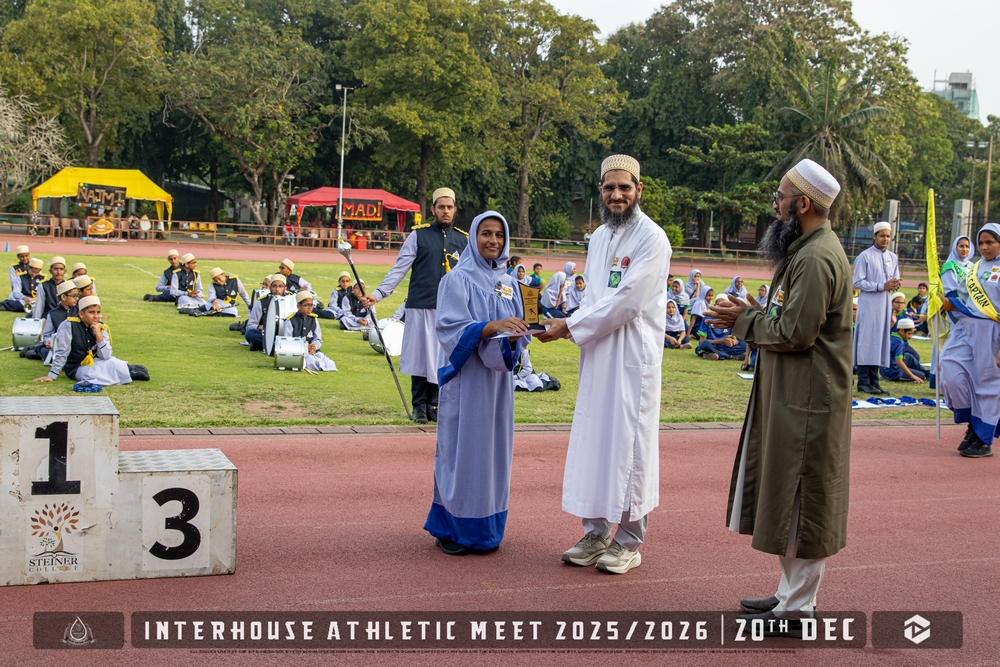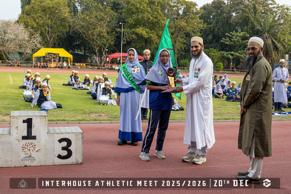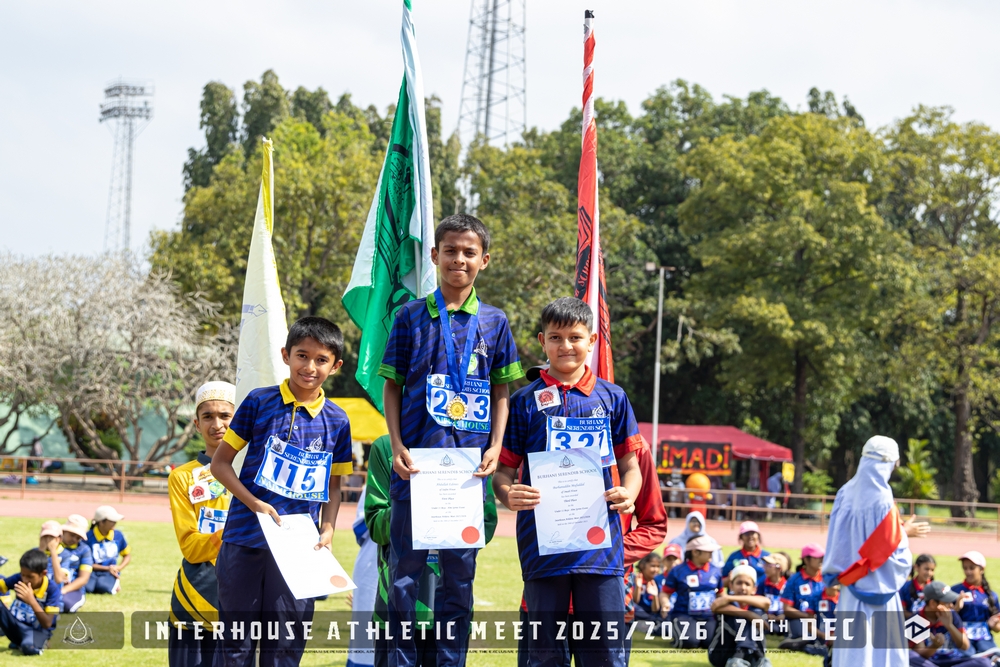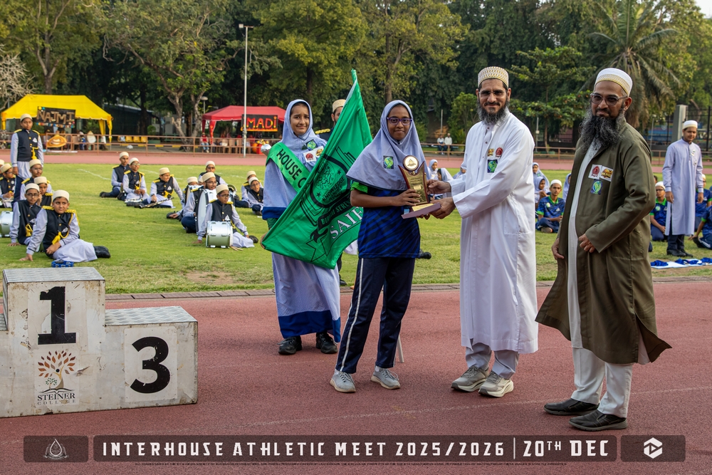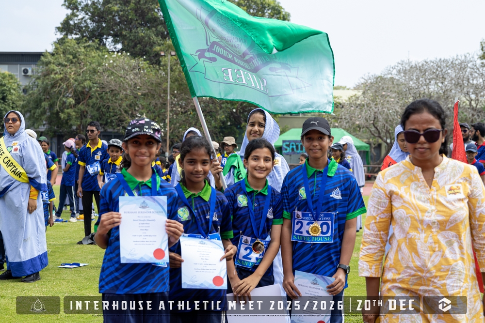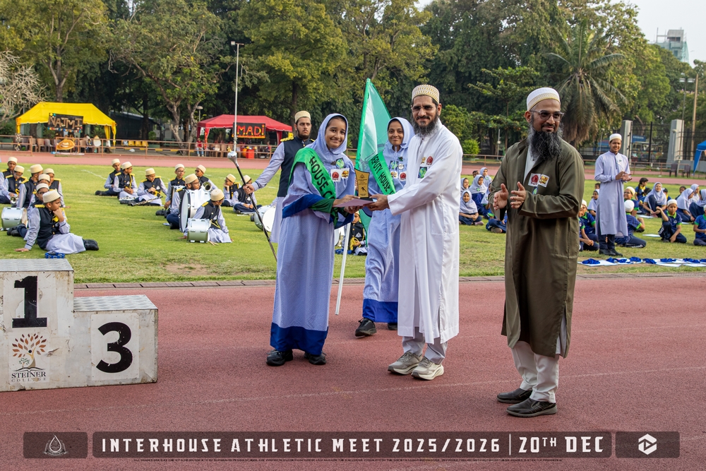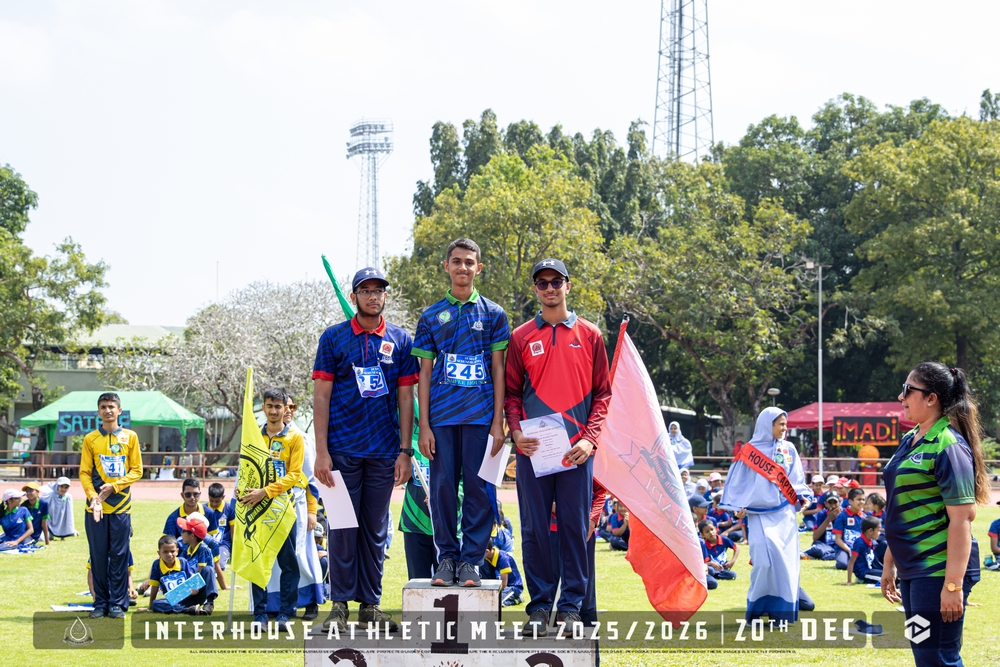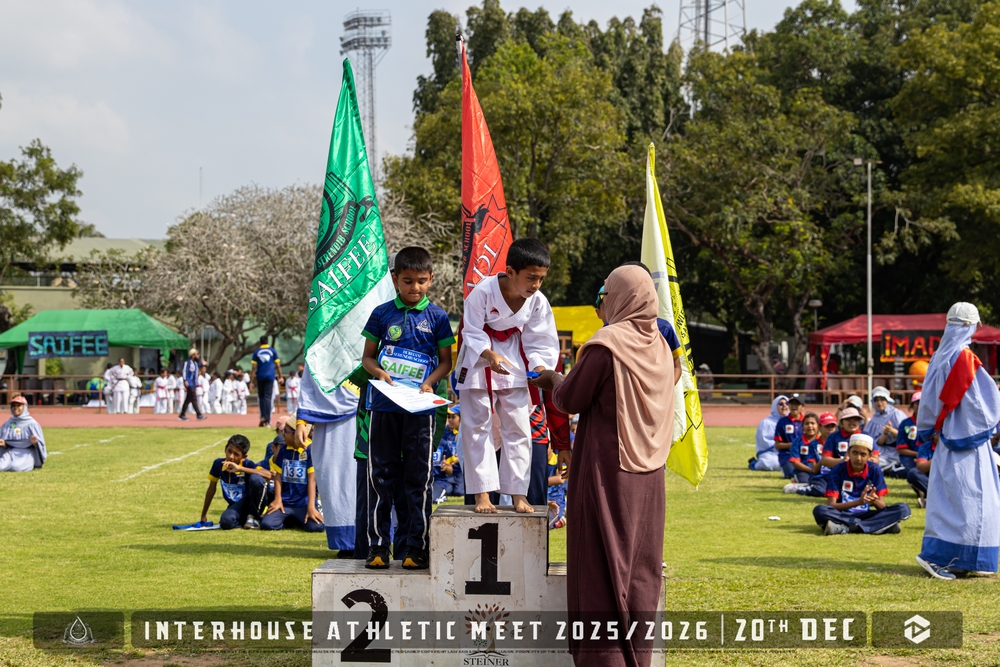 The meet concluded with SAIFEE House securing First Place, followed by IMADI House in Second Place. NAJMI House finished in Third Place, displaying determination, resilience and commendable sportsmanship. Congratulations to all participants for making the Interhouse Athletic Meet 2025/26 a successful and memorable event.